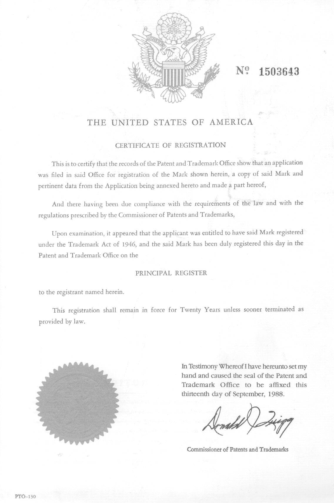 | Certification of International Fidonet Association (IFNA) (August 15, 1986) (Page 1)